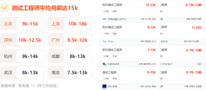 測試工程師月均薪15k